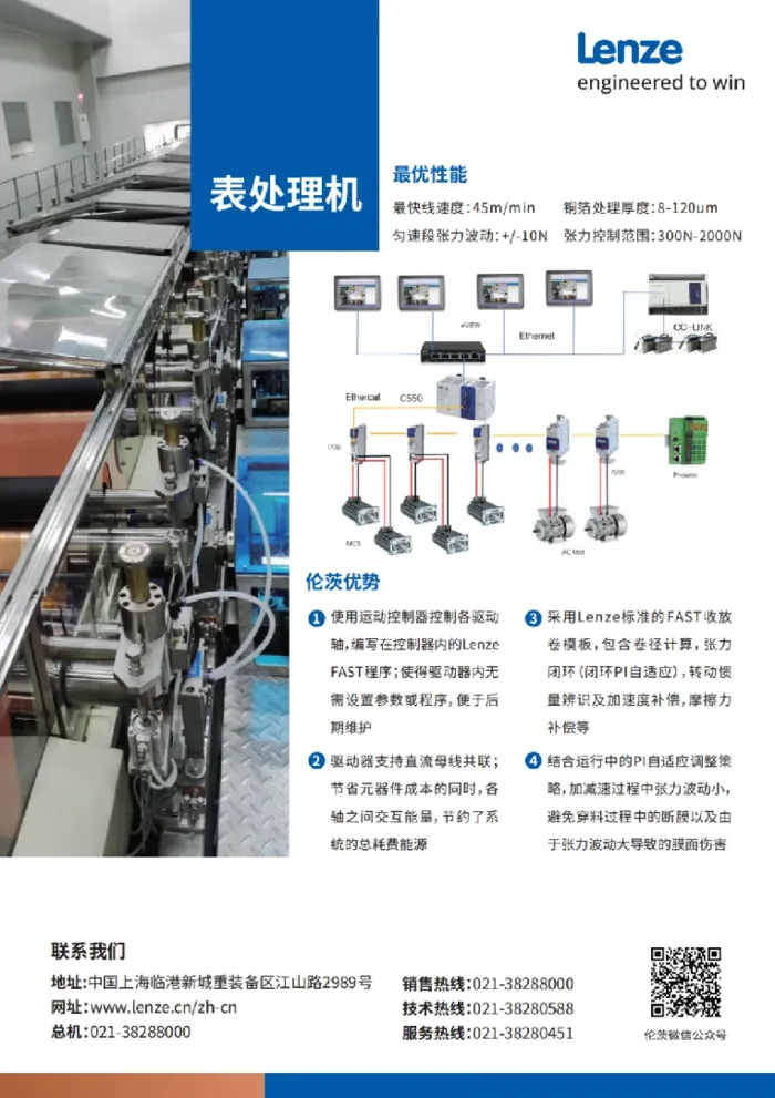 从原材料处理到电极制造,再到装配和物流运输,伦茨提供了一站式的自动化控制系统,涵盖高性能控制器、伺服驱动器、精密减速电机以及配套软件平台。