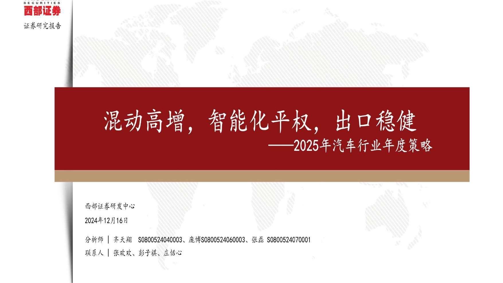 2025年汽车行业年度策略报告(乘用车、零部件、商用车、后市场复盘与展望)